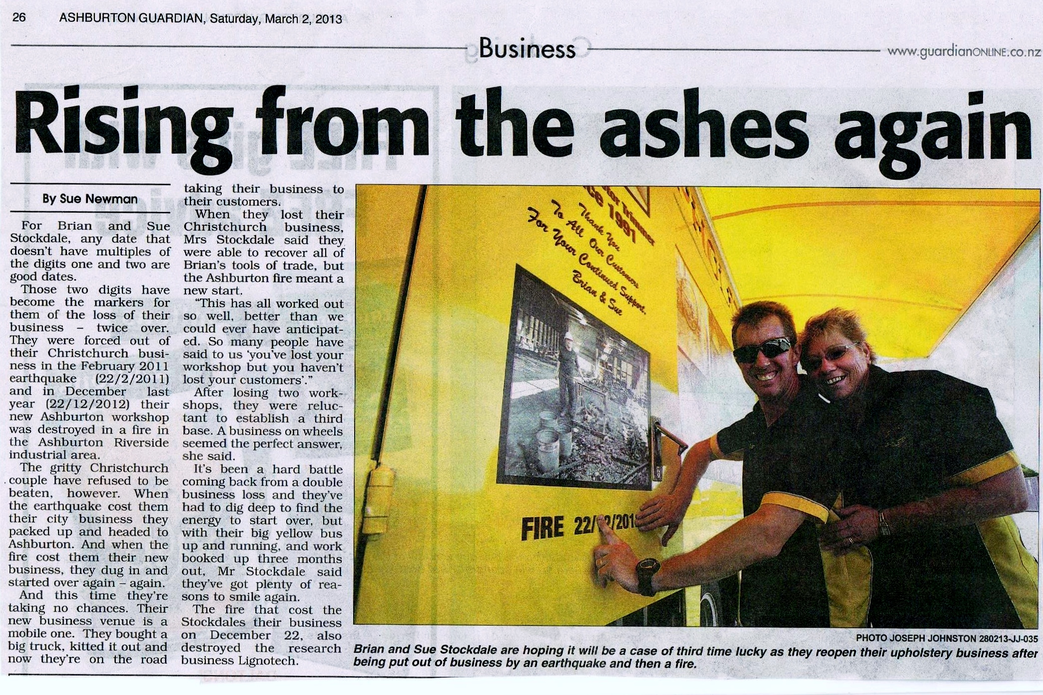 Brian has been a quailified auto marine upholsterer in Christchurch since 1991. On 22 February 2011 there was a major earthquake in Christchurch effecting the premises we were in. We relocated to Asburton, in mid Canterbury, and 18 months layer on 22 December 2012 we lost our Ashburton workshop in a fire, losing all of our equipment, and workshop premises. The fire was a big blow and we were reluctant to lease another workshop. We purchased a mobile truck and offered a mobile service over the next 12 months, as well as relocating (again!) from Ashburton to Race Course Hill in Darfield.